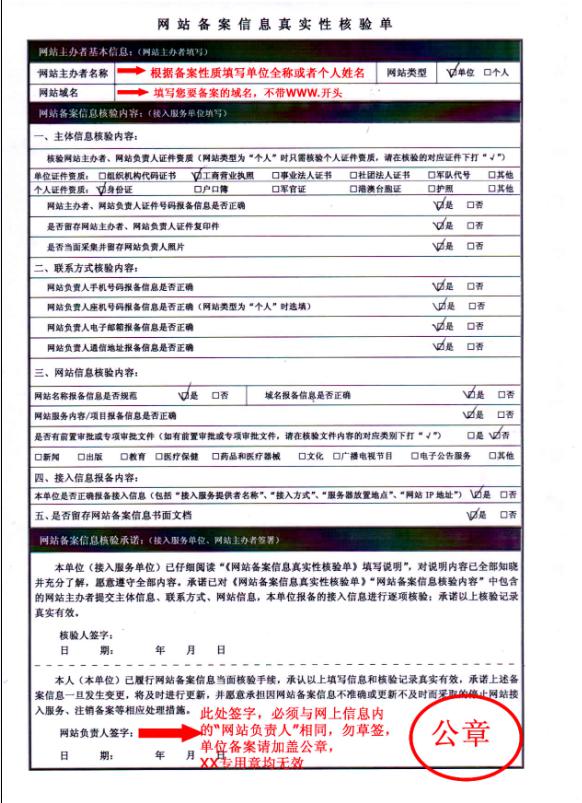 1、企业单位备案主体负责人必须是法人; 2、网站负责人不是法人的需要提供法人签署的对该网站负责人的授权书并加盖单位公章; 3、提供法人与网站负责人的正反面身份证彩色扫描件; 4、域名证书组织与所有者需要与备案主体信息一致。 5、核验照片需要带拍摄日期,在拍摄日期起5个工作日内资料未提交管局的资料作废; 6、我司不受理重庆省份个人备案。 |